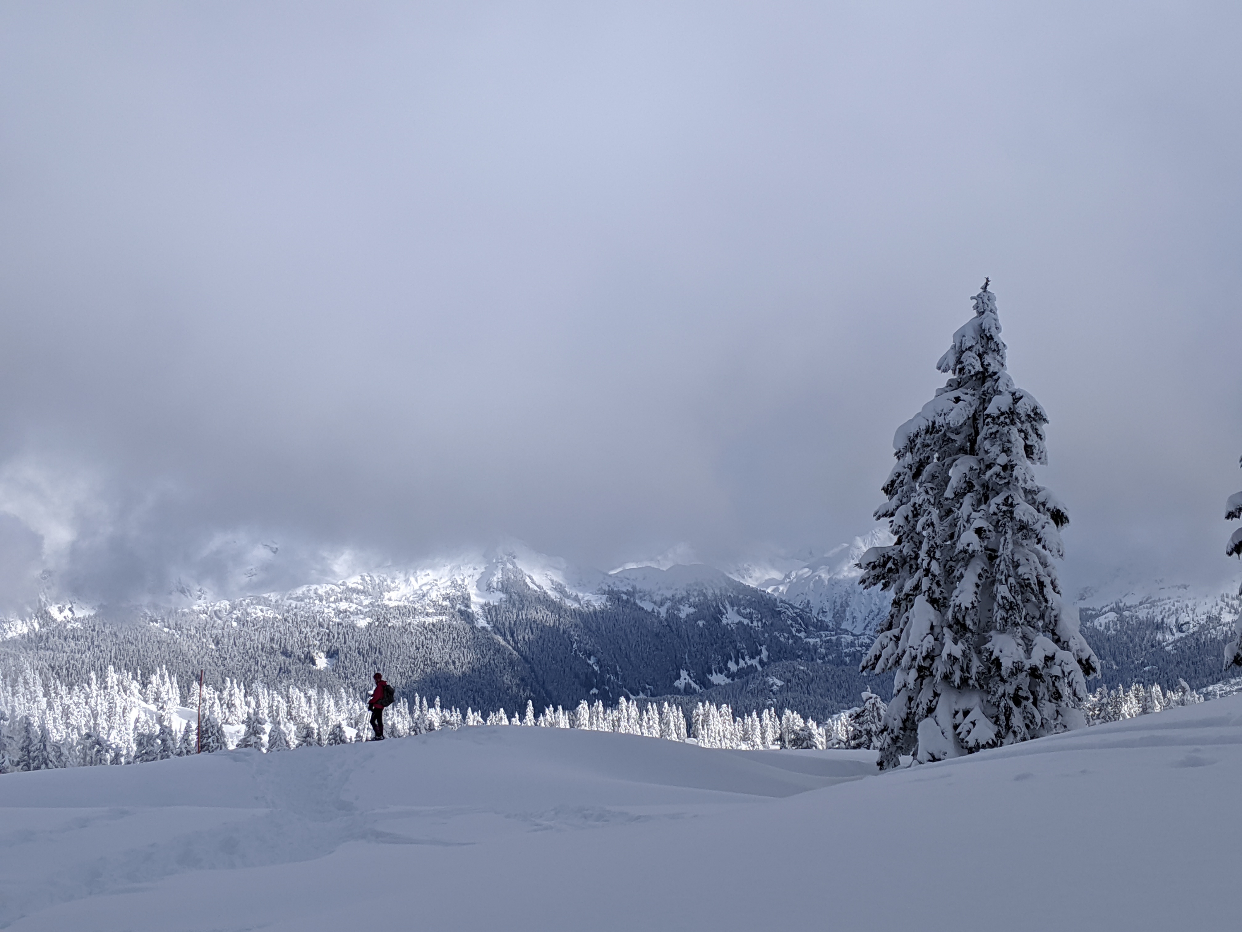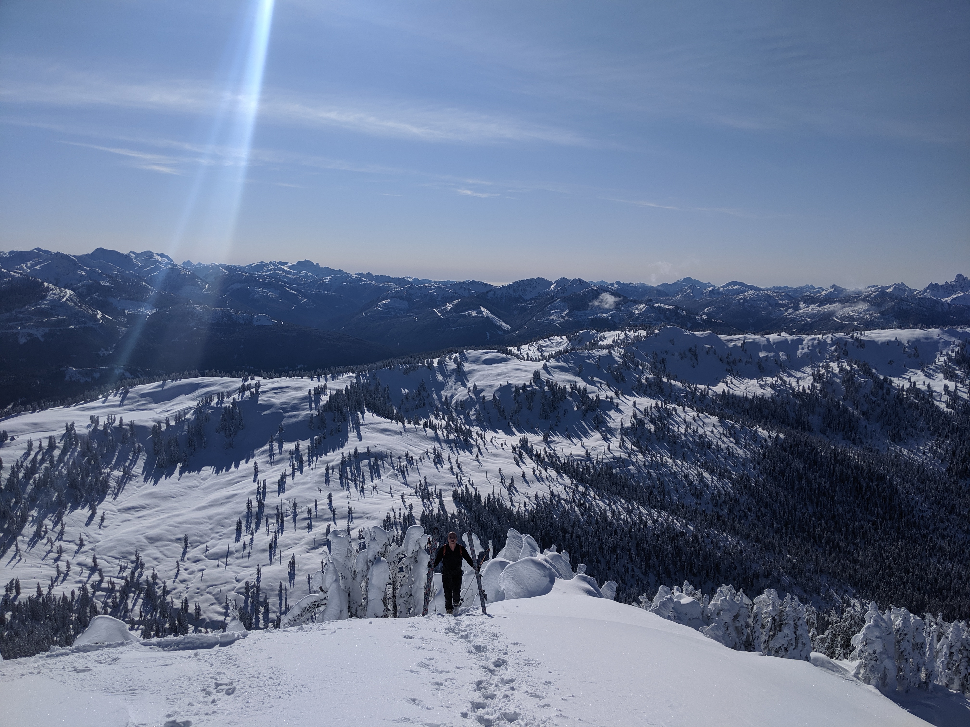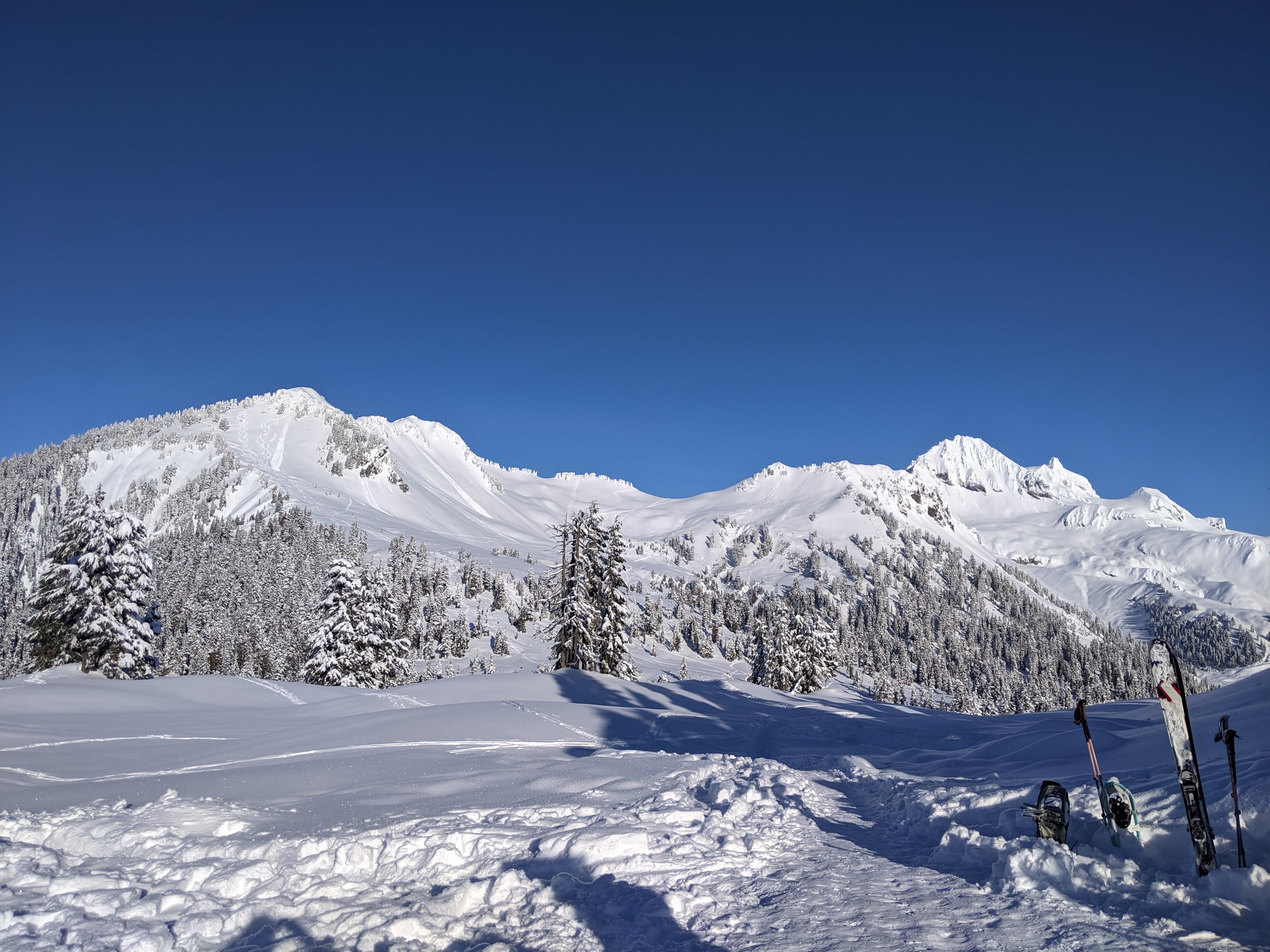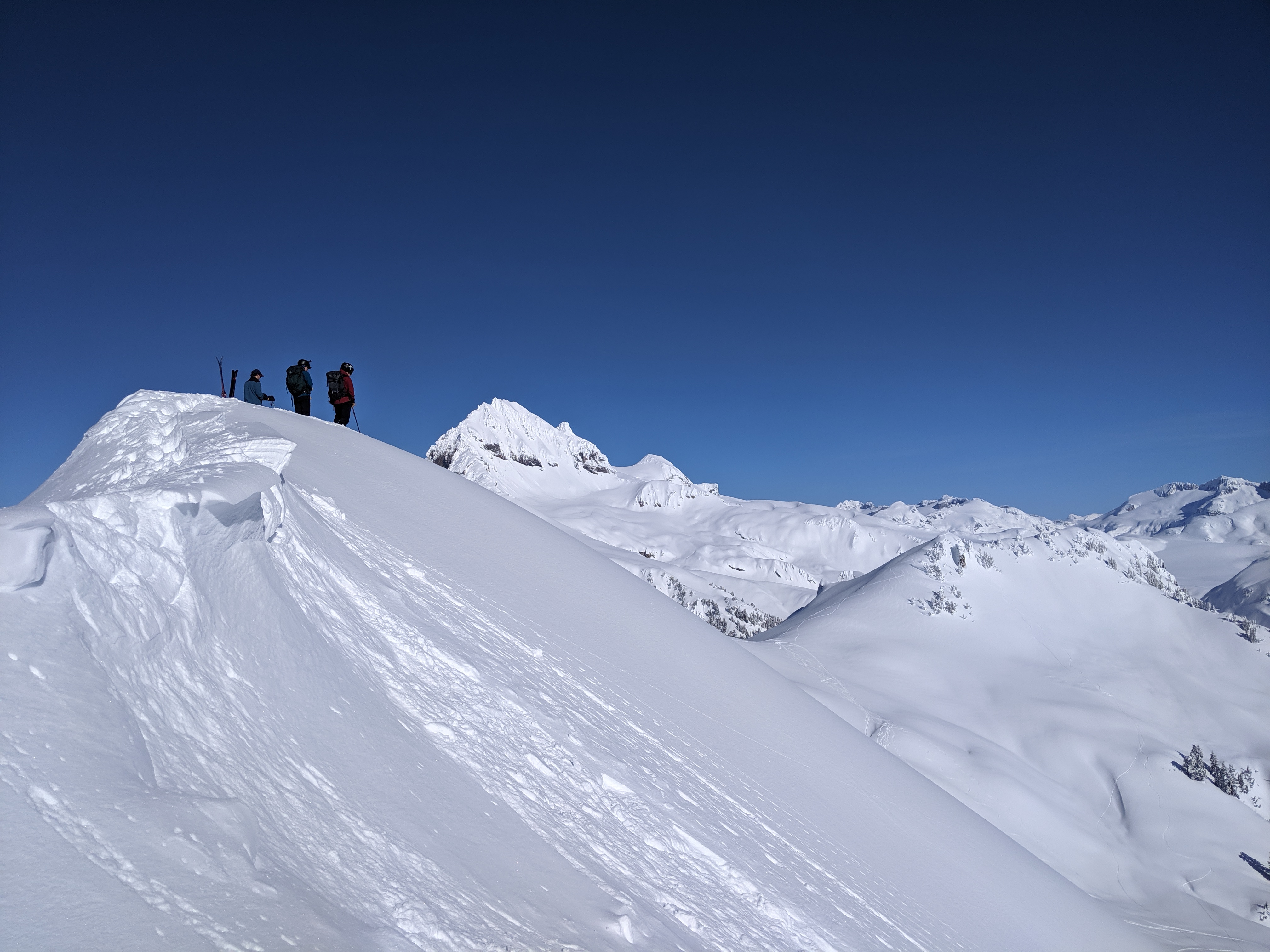 Then Day 2 came around with some lovely breakfast, then a quick ski of one of the very conveniently located neighboring mountains. This was the first mountain I ever slogged up with the intention of skiing off, so that was very very cool.