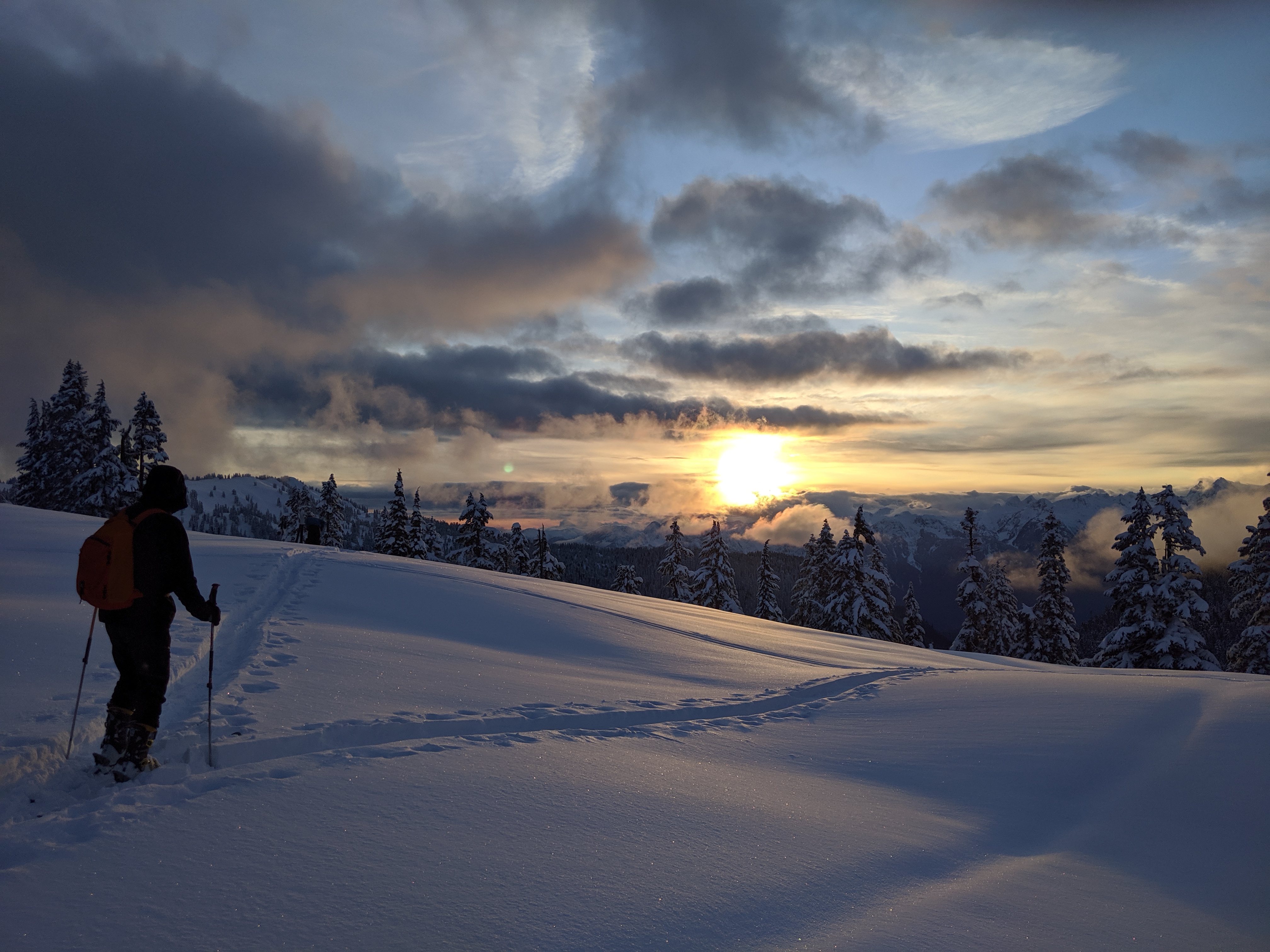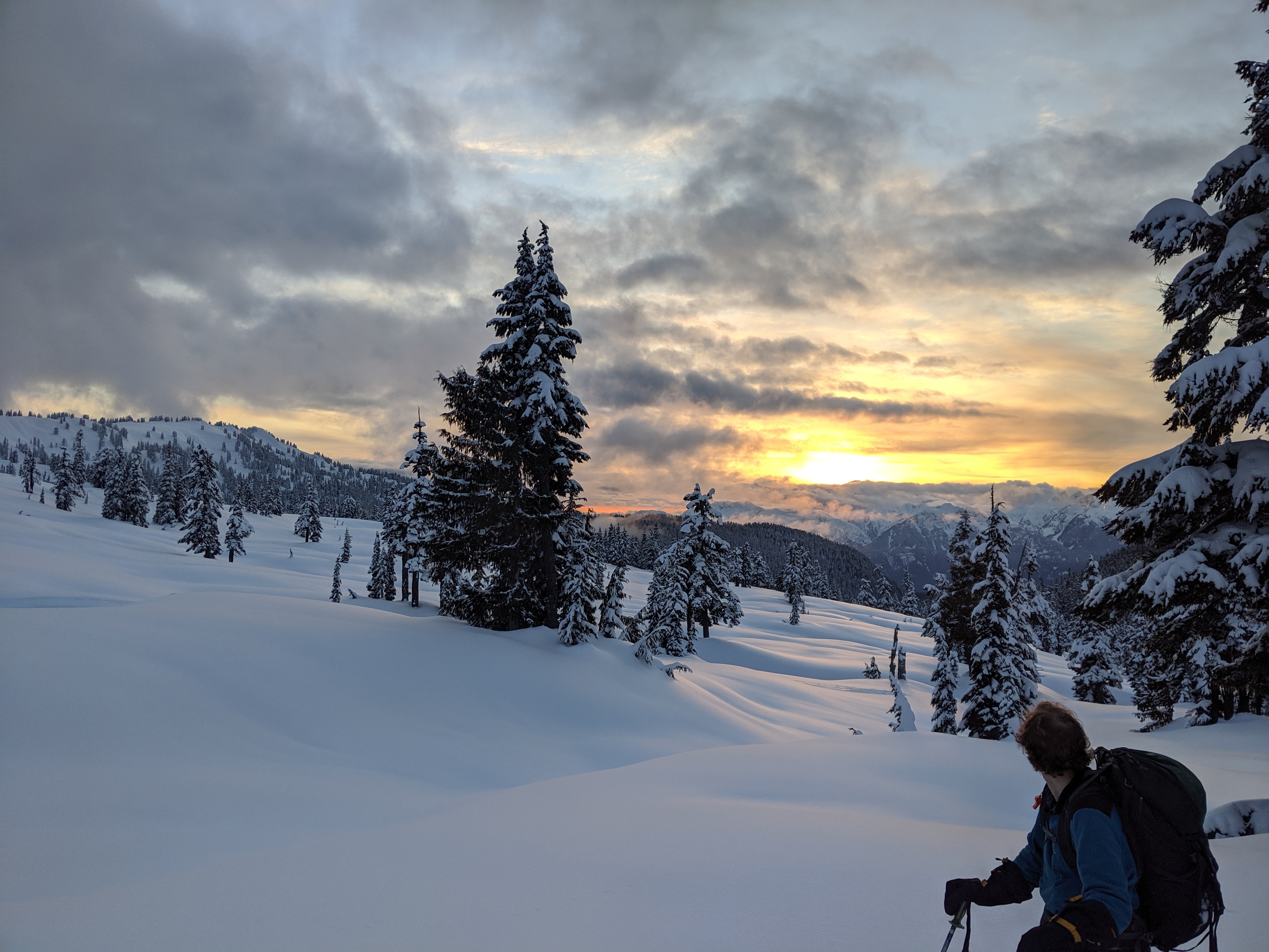 Day 1 was skinning up to Elfin carrying lots of food, gratuitous sunset photos, then preparing lots of food..